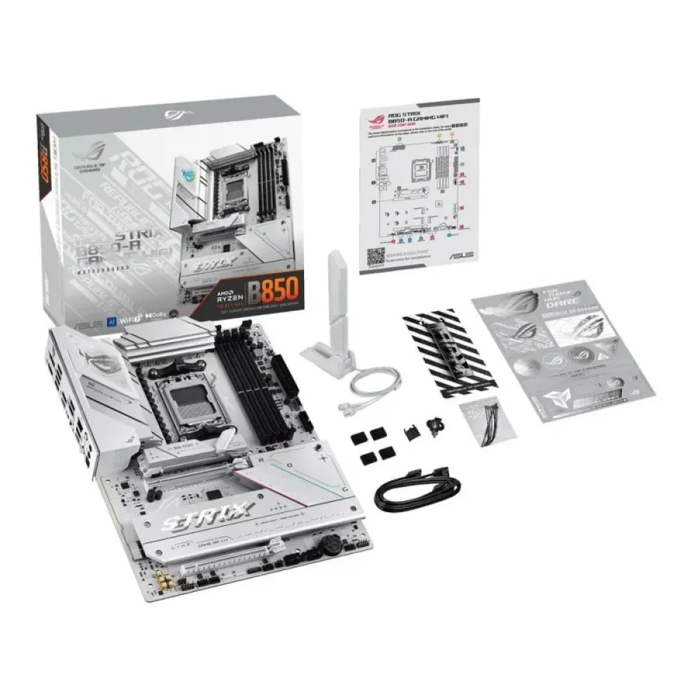 Asus ROG Strix B850-A Gaming WiFi – це вибір тих, хто цінує не тільки потужність, але й естетику. Вона ідеально підійде для створення білих збірок ПК, надаючи вашій системі унікальний та преміальний вигляд.