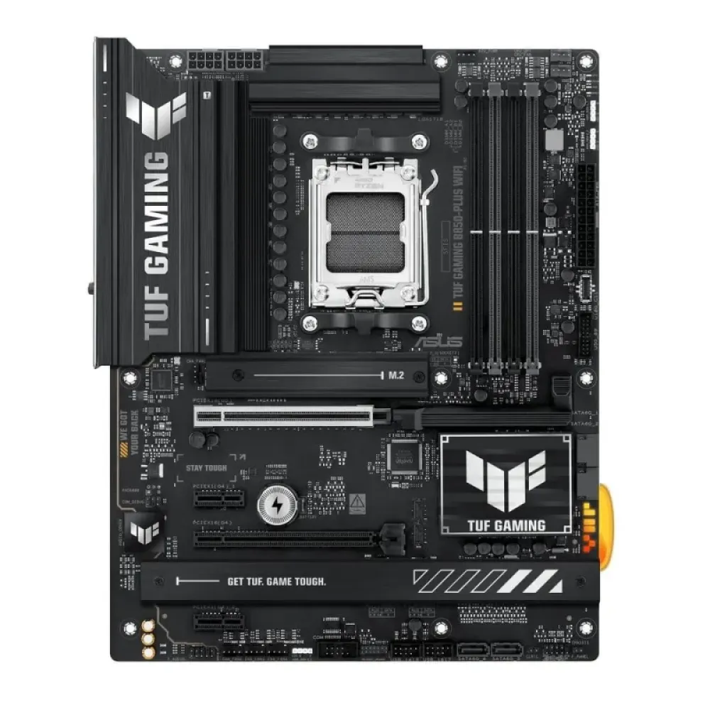 Представляємо материнську плату Asus TUF Gaming B850-Plus WiFi – ідеальний вибір для створення потужного та стабільного комп'ютера на базі платформи AM5. Ця модель поєднує в собі передові технології, компоненти військового класу та фірмову довговічність серії TUF Gaming, забезпечуючи безкомпромісну продуктивність для найвимогливіших завдань, від ігор до професійної роботи.