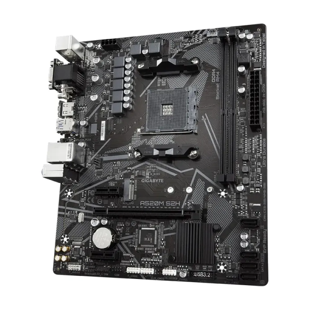 Материнська плата Gigabyte A520M S2H – це надійне рішення для складання продуктивного та стабільного ПК на базі процесорів AMD Ryzen. Ця плата формату Micro-ATX поєднує в собі передові технології, якісну елементну базу Ultra Durable та широкі можливості для розширення, що робить її чудовим вибором для геймерів, творців контенту та користувачів, яким потрібна надійна платформа для щоденних завдань. Придбайте материнську плату Gigabyte A520M S2H в інтернет-магазині Vechir Store та отримайте якісний товар з гарантією.