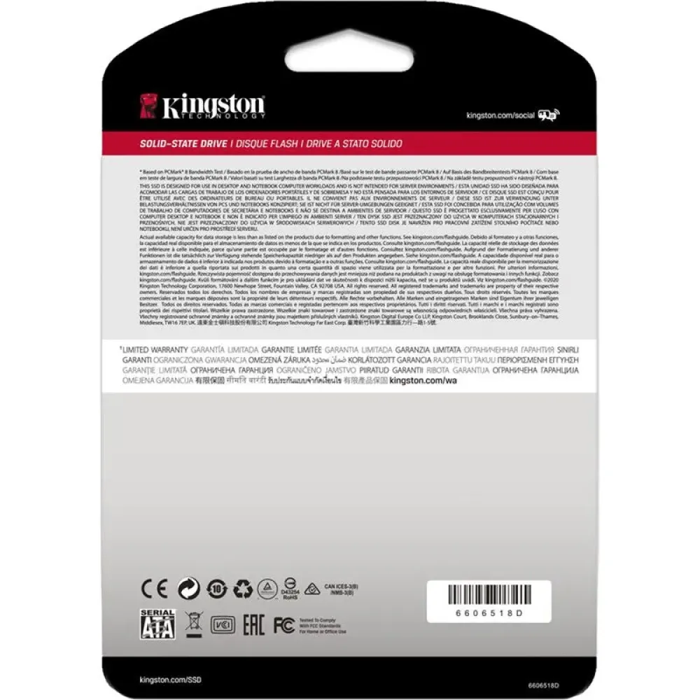 Цей SSD Kingston є ідеальним рішенням для оновлення старих систем або побудови нових, забезпечуючи оптимальне співвідношення ціни та продуктивності. Він дозволить вам працювати ефективніше, грати без затримок та насолоджуватися швидкістю, яку може надати лише твердотільний накопичувач.