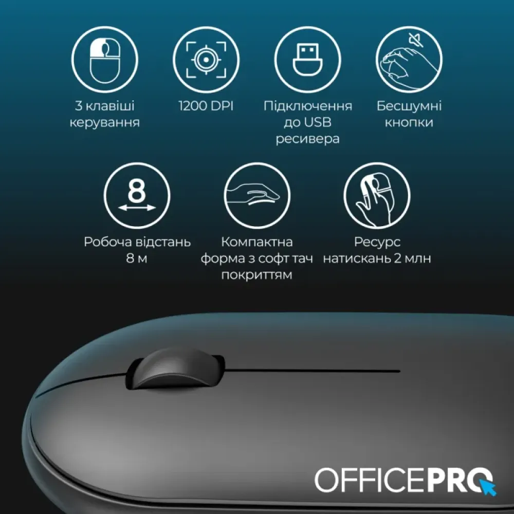 - Висока точність: Оптичний сенсор забезпечує точне відстеження рухів на різних поверхнях.