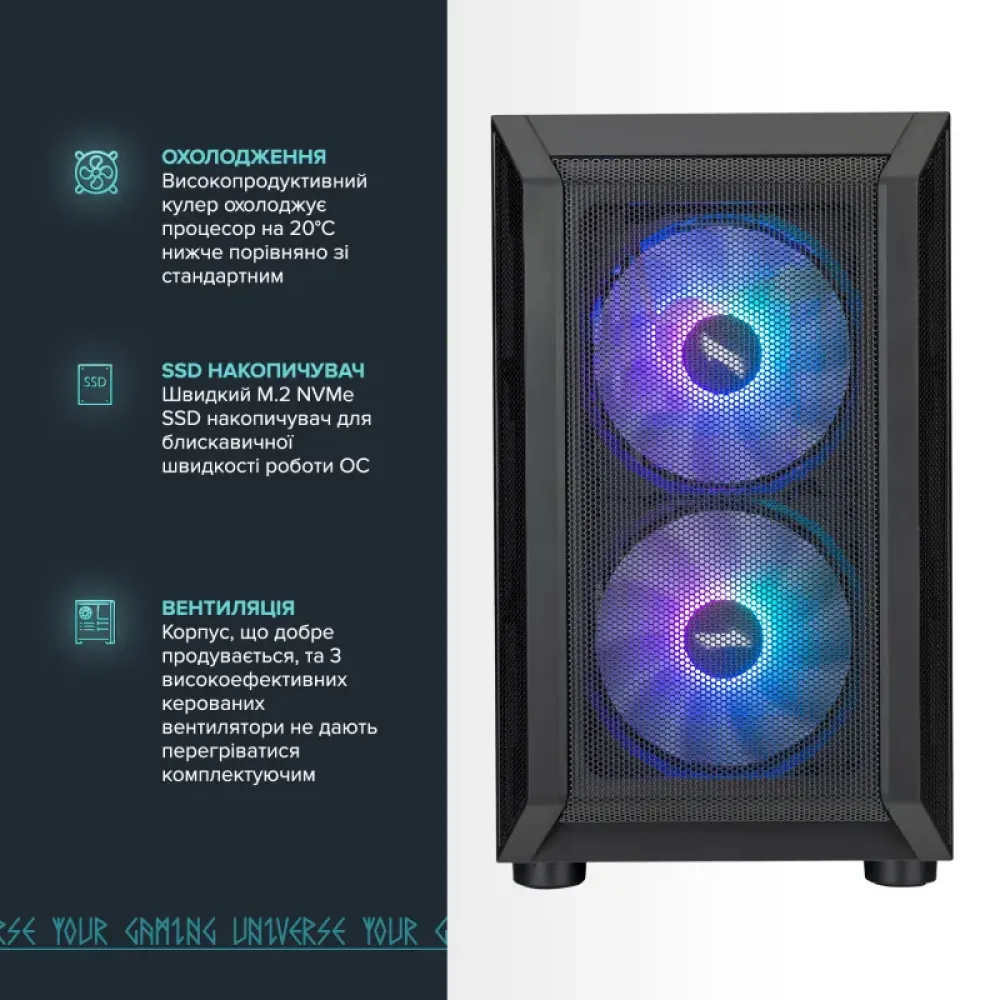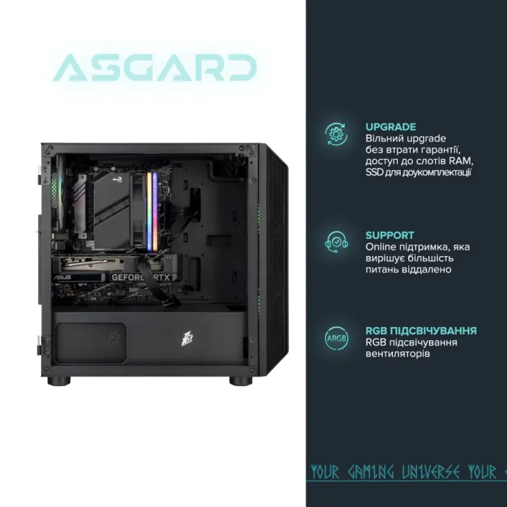 Цей персональний комп'ютер від ASGARD – це не просто ігровий пристрій, а справжній центр вашого цифрового світу. Він створений для тих, хто прагне досконалості та не йде на компроміси у виборі обладнання. Кожна деталь, від потужного процесора до стильного корпусу, працює на те, щоб ви отримали максимум задоволення від гри та роботи.