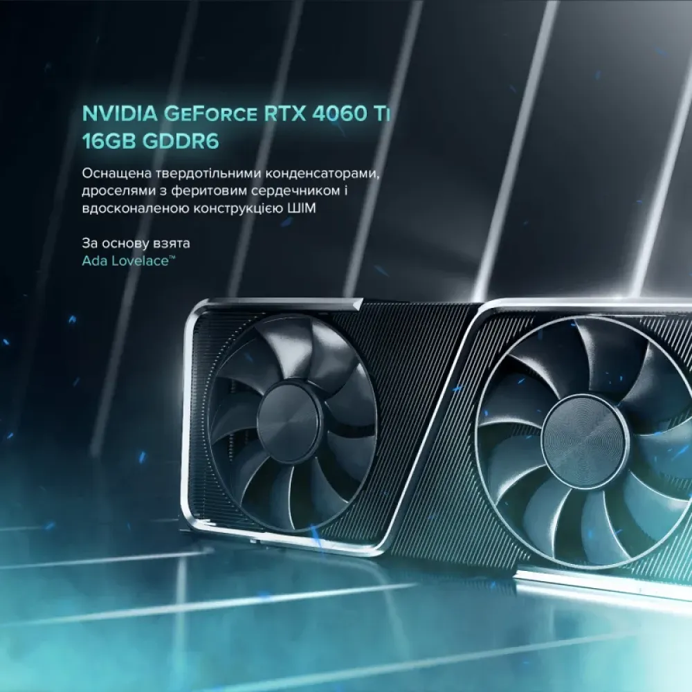 - Відеокарта: NVIDIA GeForce RTX 4060 Ti з 16 ГБ відеопам'яті гарантує приголомшливу графіку та можливість грати на максимальних налаштуваннях.