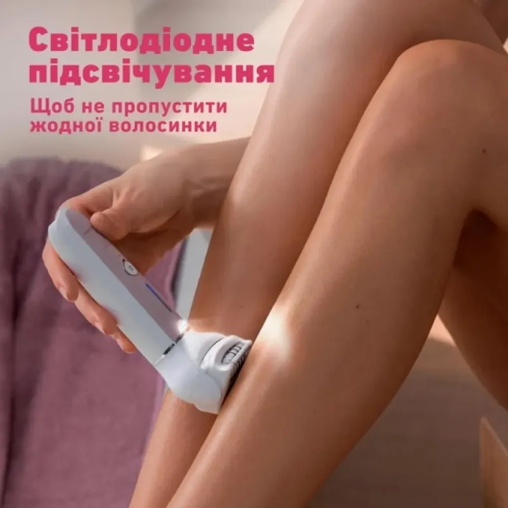 - Волога та суха епіляція: Можливість використання епілятора у душі або ванні робить процес більш комфортним та зменшує подразнення шкіри.