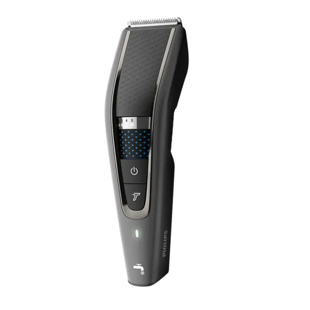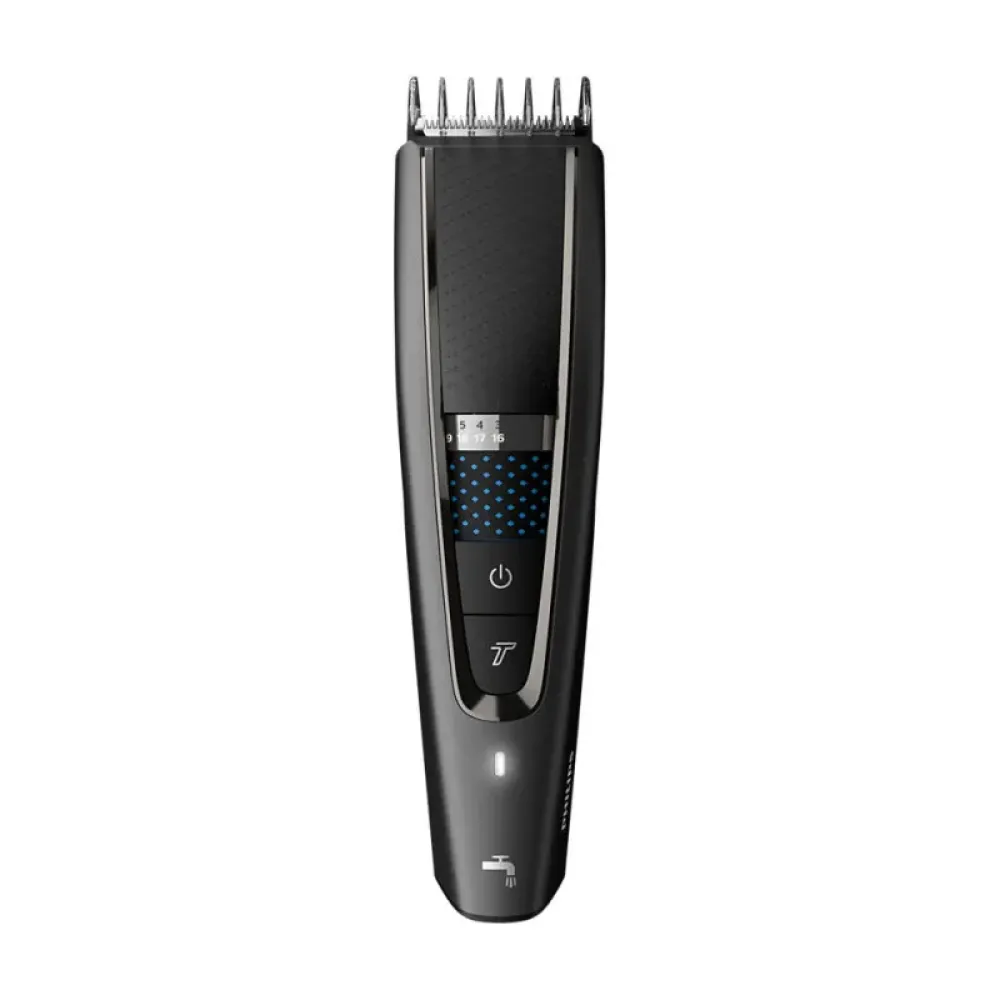 Машинка Philips HC7650/15 оснащена 28 налаштуваннями довжини, що дозволяє досягти ідеальної довжини волосся від 0,5 до 28 мм з кроком 1 мм, використовуючи два регульовані гребені. Для коротких стрижок або догляду за бородою передбачено спеціальний 2-мм гребінь для щетини. Якщо ж ви прагнете максимально короткої стрижки, гребінь можна зняти для досягнення довжини 0,5 мм. Датчик PowerAdapt автоматично регулює потужність двигуна залежно від густоти волосся, забезпечуючи стабільну потужність зрізання та запобігаючи ривкам. Турборежим надає додаткову потужність для роботи з густим волоссям, роблячи процес стрижки ще ефективнішим. Цей пристрій є повністю водонепроникним, що значно полегшує процес очищення – достатньо просто промити його під проточною водою. Ергономічний дизайн з текстурованою ручкою забезпечує зручне захоплення та повний контроль під час стрижки, а потужний літій-іонний акумулятор гарантує до 90 хвилин автономної роботи після всього 1 години зарядки. Можливість роботи від мережі забезпечує безперервність процесу, навіть якщо заряд акумулятора вичерпався.