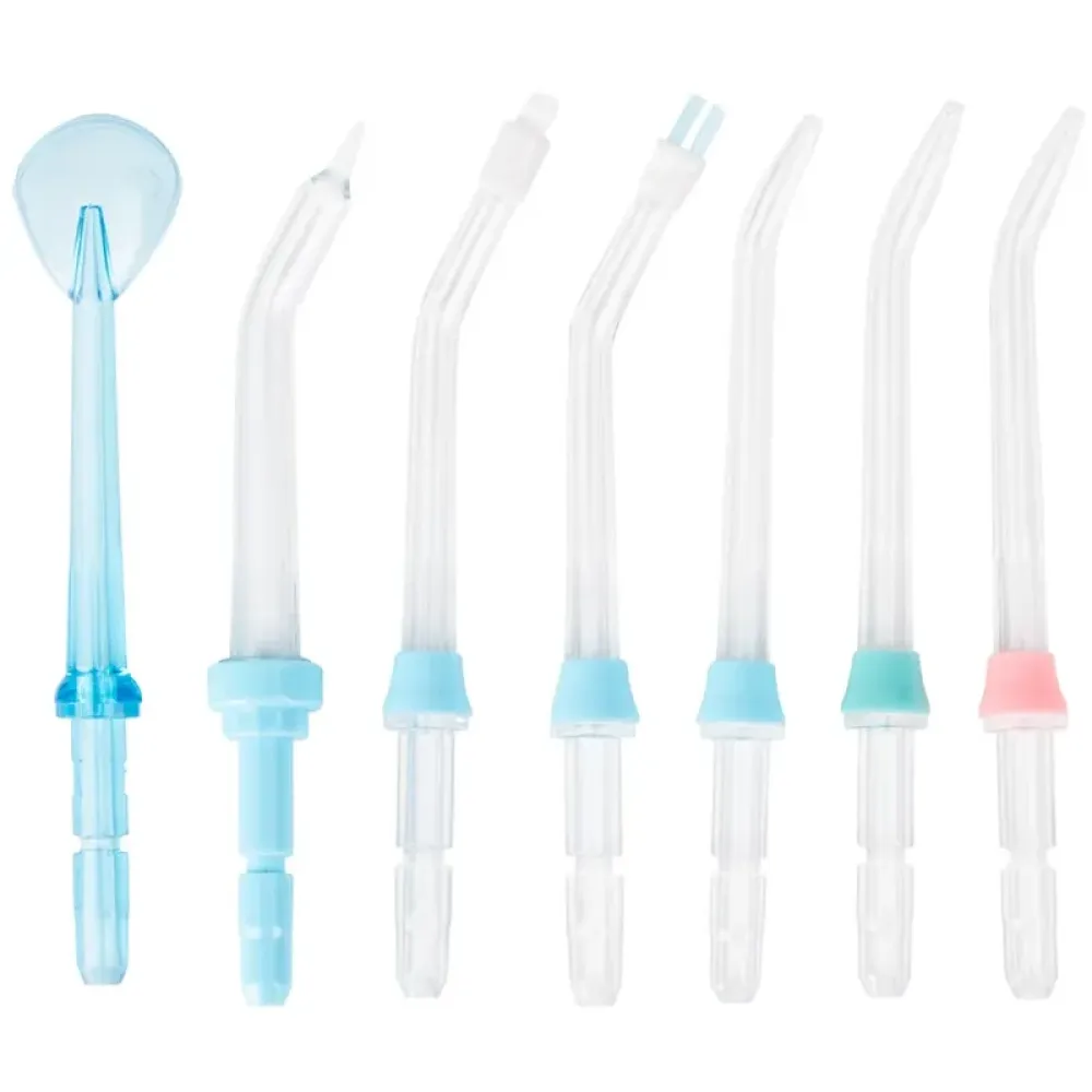 - 7 багатофункціональних насадок: У комплект входять 3 класичні насадки для щоденного використання всією родиною, а також спеціалізовані насадки: для видалення нальоту, ортодонтична для брекетів, пародонтологічна для догляду за яснами та ложка для чищення язика.
