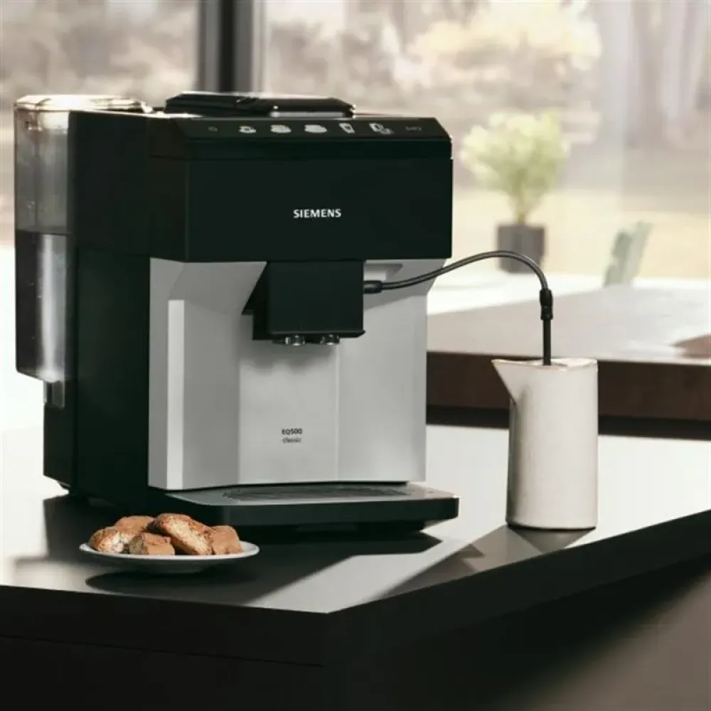 Представляємо вам кавомашину Siemens TP511R01 – втілення німецької інженерії та стилю, створене для справжніх поціновувачів кави. Ця повністю автоматична кавомашина серії EQ.500 classic від Siemens поєднує в собі вишуканий дизайн, інтуїтивно зрозуміле керування та виняткову функціональність, щоб щодня дарувати вам насолоду бездоганно приготованою кавою.