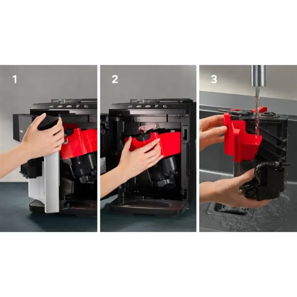 - Легке обслуговування та очищення: Знімний заварювальний блок, який легко миється під проточною водою, а також автоматичні програми очищення та видалення накипу (calc'nClean) забезпечують довговічність приладу.