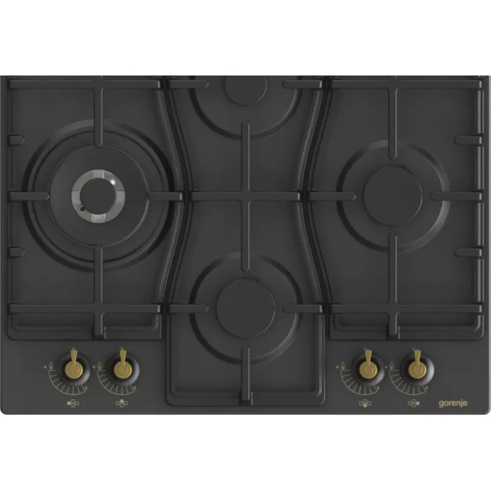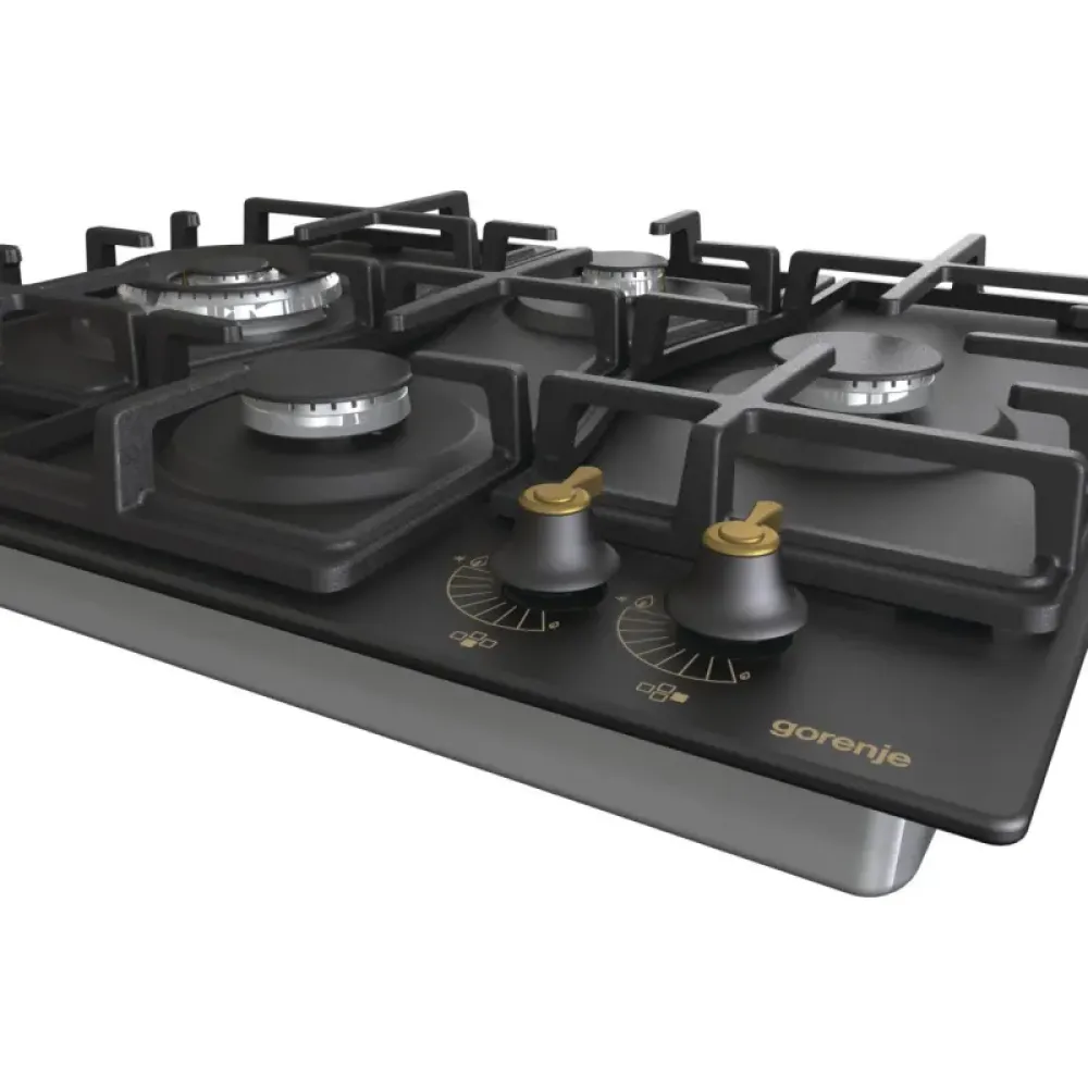 Варильна поверхня Gorenje GW6D42CLB відрізняється продуманим функціоналом та високою продуктивністю. Вона оснащена чотирма конфорками різного діаметру та потужності, що дозволяє одночасно готувати кілька страв, оптимізуючи час приготування. Система автоматичного запалювання забезпечує швидке та безпечне увімкнення конфорок, а функція газ-контролю гарантує максимальну безпеку, автоматично перекриваючи подачу газу у разі випадкового згасання полум'я. Поверхня виготовлена з високоякісної нержавіючої сталі, що забезпечує довговічність, легкість у догляді та стійкість до механічних пошкоджень. Елегантні чавунні решітки не тільки додають естетичної привабливості, але й забезпечують надійну опору для посуду будь-якого розміру.