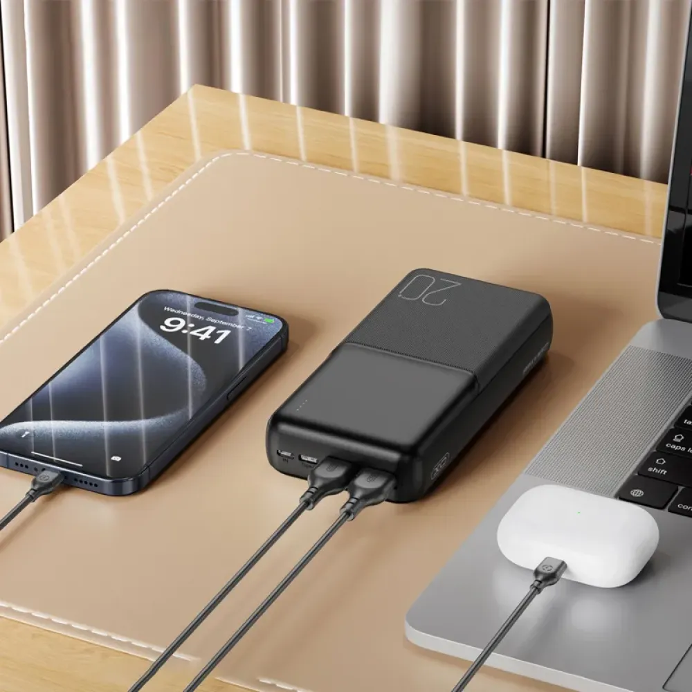 - Велика ємність: Завдяки ємності 20000 mAh, ви зможете кілька разів зарядити свій смартфон або планшет, не турбуючись про розетку.
