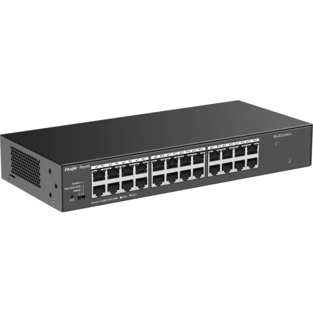 Ruijie Reyee RG-ES124G-L – це 24-портовий гігабітний комутатор, який забезпечує високу продуктивність та надійність вашої мережі. Він ідеально підходить для розгортання в офісах, магазинах, навчальних закладах та інших місцях, де потрібне стабільне та швидке підключення багатьох пристроїв. Завдяки своїй простоті у використанні та відсутності необхідності в складних налаштуваннях, цей комутатор є чудовим вибором для тих, хто шукає ефективне та економічне рішення для своєї мережі. Нижче представлені ключові характеристики, які роблять цей комутатор незамінним помічником у вашому бізнесі чи домі.