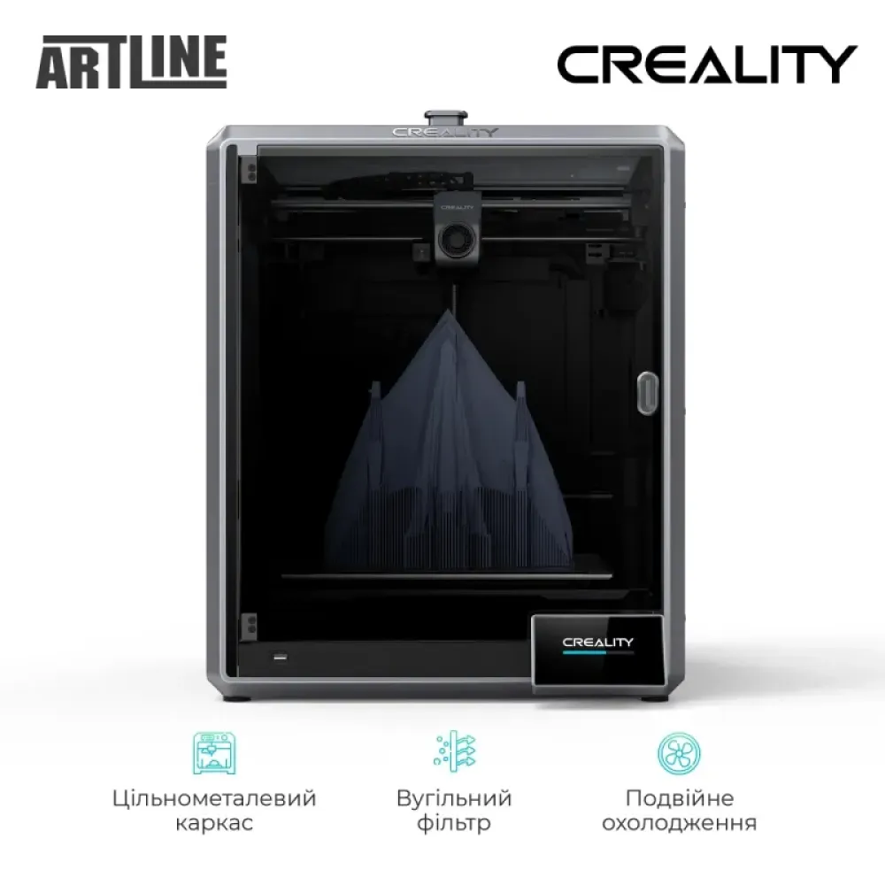 Ці особливості роблять Creality K1 Max не просто 3D-принтером, а повноцінним інструментом для реалізації найскладніших завдань у сфері 3D-моделювання та виробництва. Його здатність працювати з різноманітними матеріалами, включаючи філаменти з вуглецевого волокна, розширює межі вашої творчості та дозволяє створювати міцні та функціональні вироби.