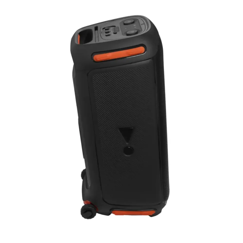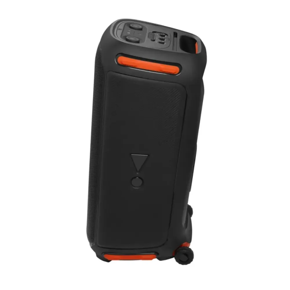 - Зручна портативність: Незважаючи на свої розміри, JBL PartyBox 710 легко транспортувати завдяки міцним коліщаткам та зручній ручці. Це дозволяє вам брати свято з собою куди завгодно, забезпечуючи легке переміщення та встановлення.
